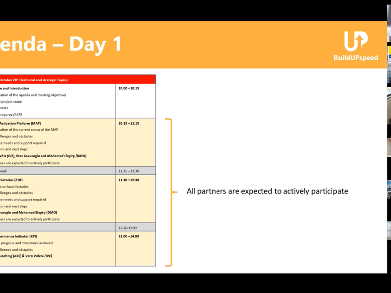 The BuildUPspeed project held its seventh Consortium Meeting virtually, bringing together 19 participants on the first day and 17 on the second. Led by María Ibáñez and Sara Dorregaray (ACR), this meeting marked a symbolic moment: the last online gathering before returning to in-person encounters.