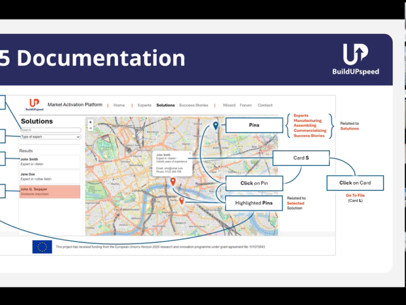 The team presented the new online prototype of the Market Activation Platform (MAP), which already includes catalogues of experts, solutions and success stories, interactive maps, and a three-level authentication system. Next step: facilitating content upload through forms and Excel templates.